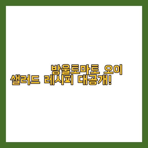 자, 이제 여러분도 쉽고 간단하게 방울토마토 오이 샐러드를 만들 수 있겠죠? 😊 무더운 여름, 상큼한 샐러드로 건강과 맛, 두 마리 토끼를 모두 잡아보세요! 🐰 궁금한 점은 댓글로 남겨주세요! 💕